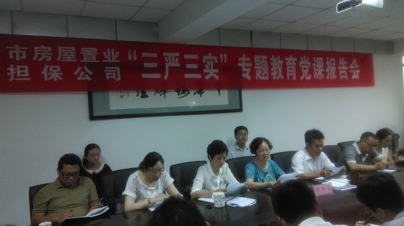 6月26日下午,市住建委黨委委員、副主任程國志來到市房屋置業(yè)擔保公司,專門作了“三嚴三實”專題教育黨課輔導。公司領導班子全體成員、中層骨干、黨員、發(fā)展對象及入黨積極分子30余人參加報告會?! ?br />